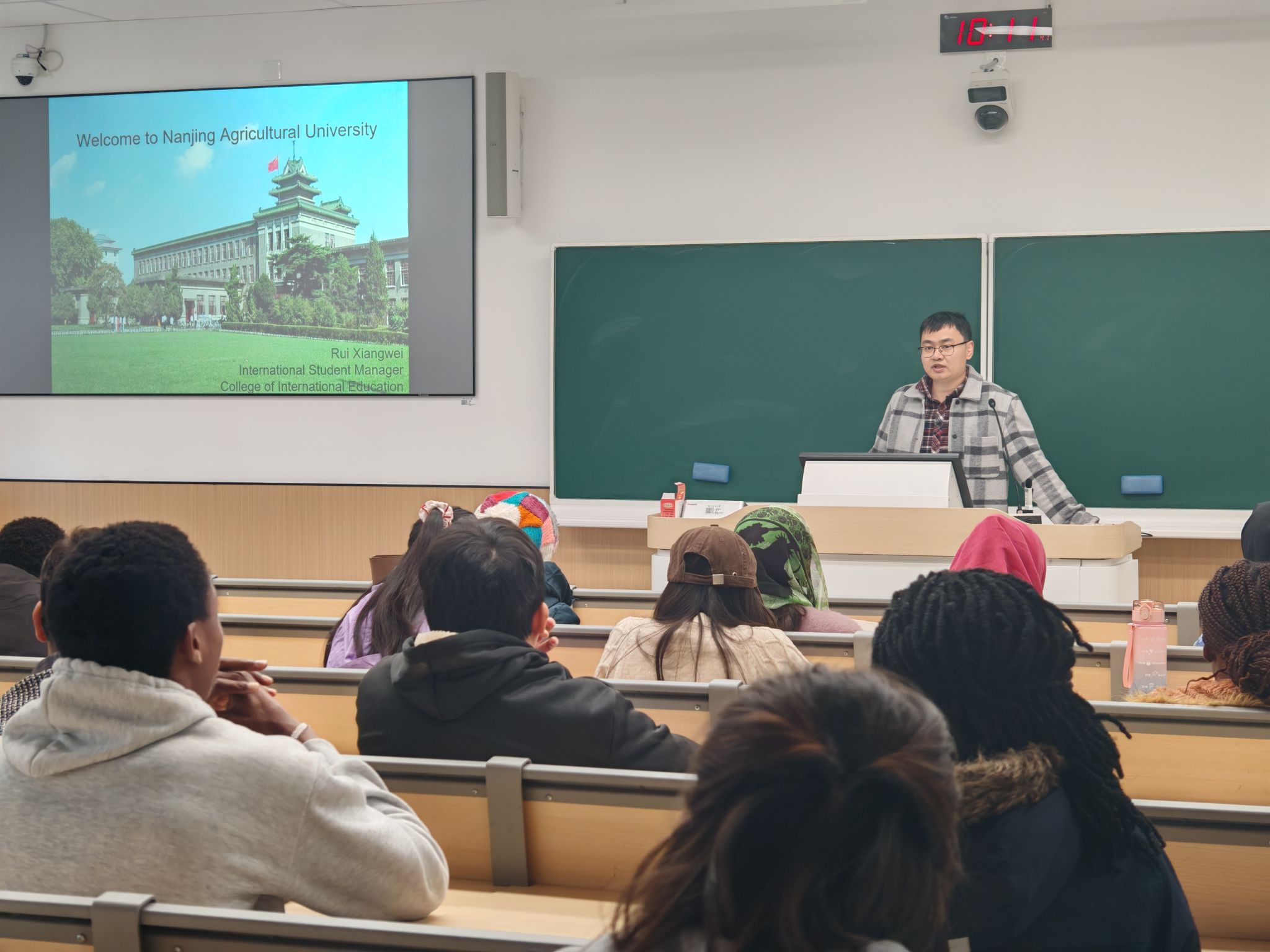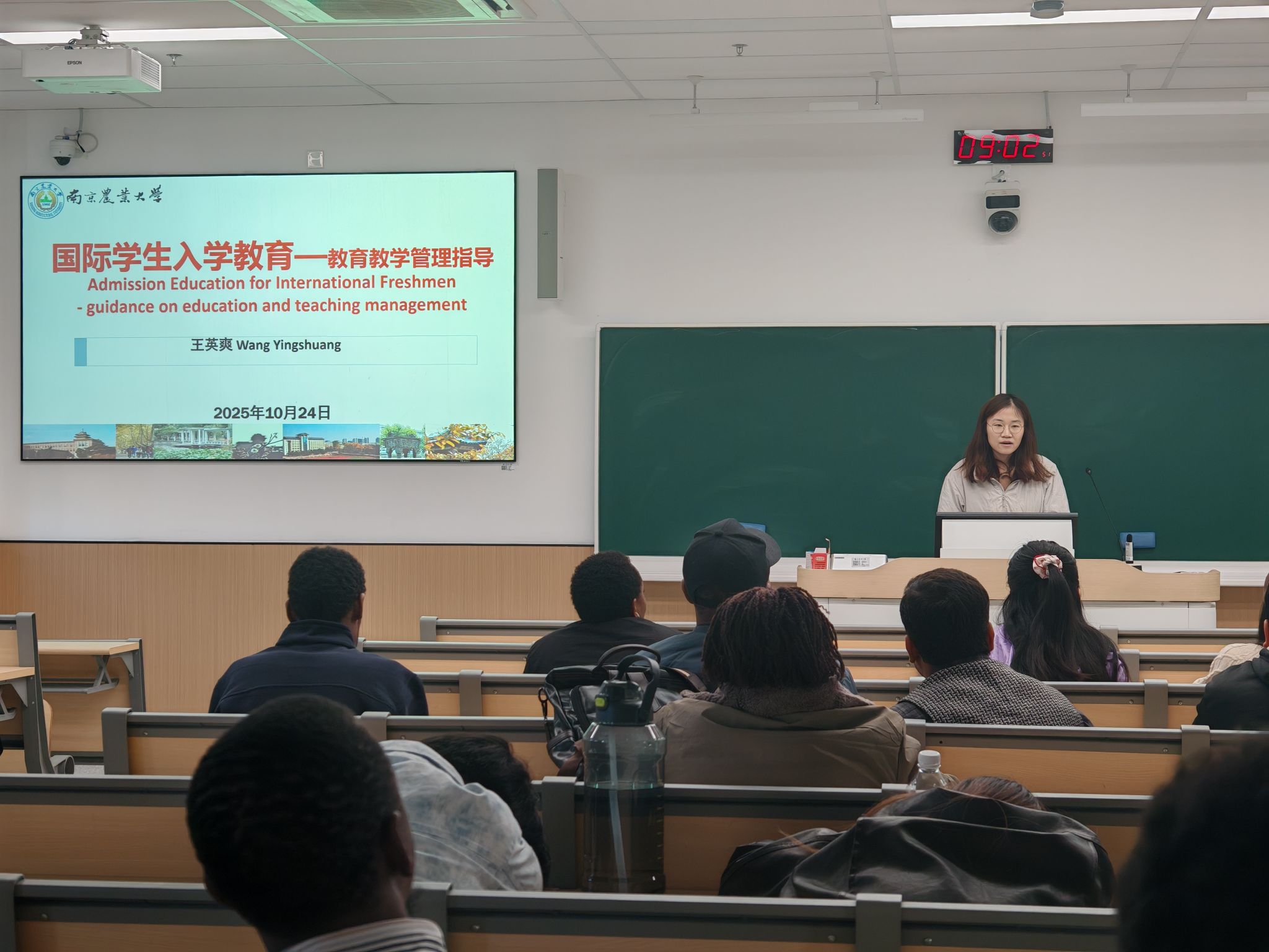 10月23-24日,以“跨越山海,启程南农”为主题的2025级国际新生入学教育系列讲座在南京农业大学卫岗校区和滨江校区举行。入学教育内容全面而细致,围绕“身心健康与在华生活规范”和“教育教学与日常管理指导”两大板块展开,为国际新生带来了一场及时而丰富的“精神盛宴”,全方位助力国际新生顺利开启在南农的求学之旅。