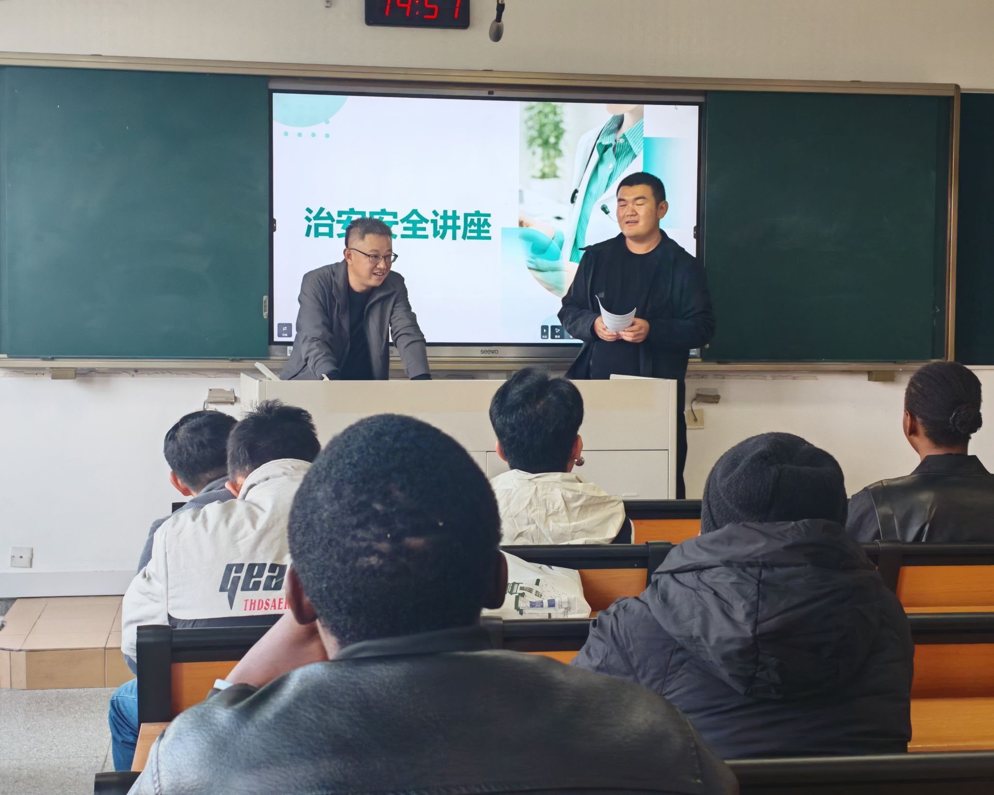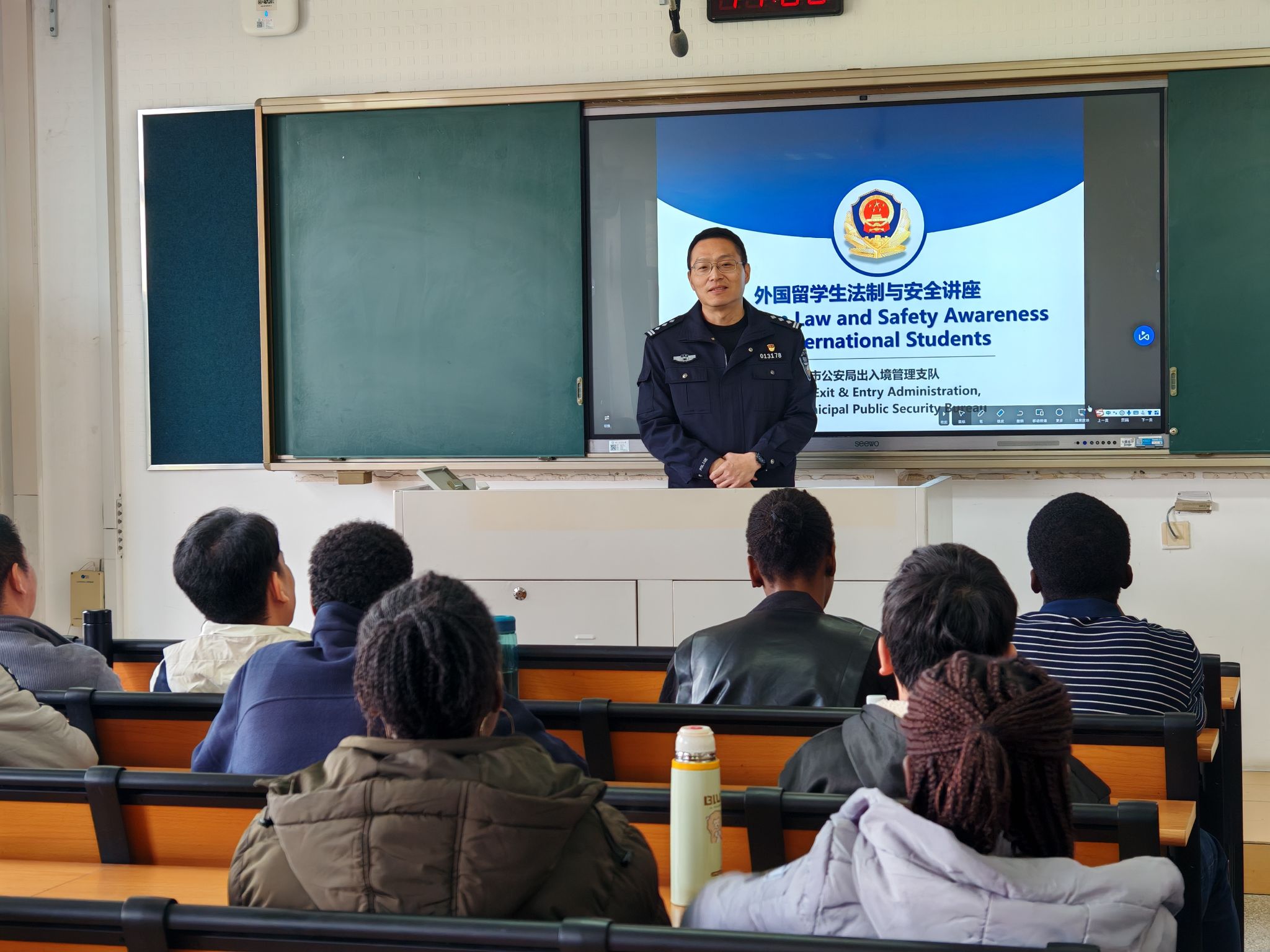 安全是留学生活的底线。南京市公安局出入境管理处的警官为新生们上了一堂生动的法律法规课,详细解读了签证、居留许可等政策,并结合真实案例,严肃警示了非法务工等行为的严重后果。