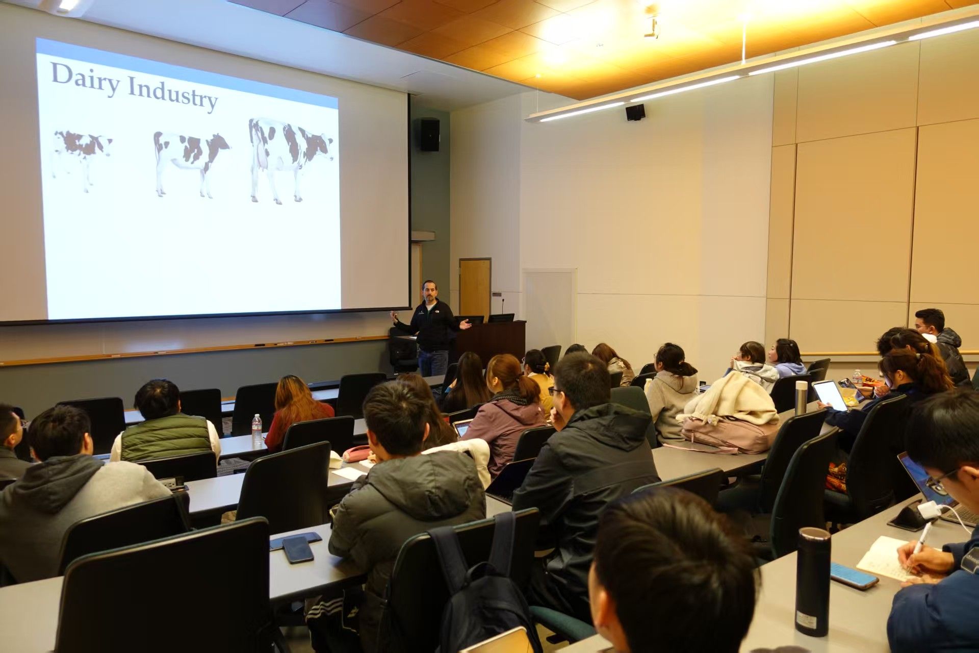 交流期间,学生们沉浸式参与了UC Davis精心安排的多元化活动,涵盖课堂教学、企业参访、实践观摩、小组研讨、文化考察、成果汇报等多个环节,全方位感受国际前沿学术氛围与实践创新理念。他们积极互动、深入探讨,就中美在畜牧业管理、疫病监测、食品安全标准等方面的差异与共性展开深度交流,展现出扎实的专业素养与开放的思辨能力。他们与UC Davis研究生团队协同合作,围绕“同一健康”框架下的热点议题进行研讨,并在结业仪式上以全英文形式进行成果展示。