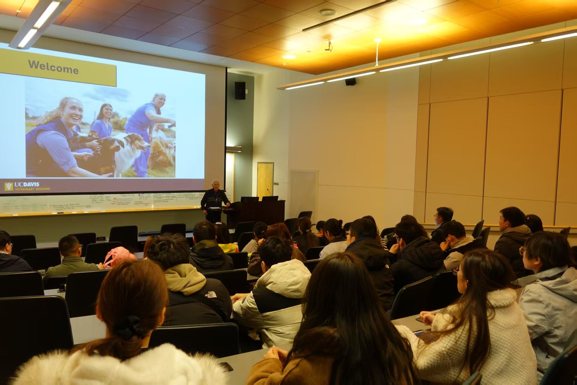 开班仪式上,UC Davis兽医学院名誉院长、西部食品安全与安全研究所(VVIFSS)拓展与培训部主任Dr. Bennie Osburn向南农师生来访表示欢迎,他强调,面对全球性健康挑战,跨学科、跨国界的合作至关重要,期待通过此次交流,两校师生能够碰撞出更多智慧的火花,共同推动“同一健康”理念在全球范围内的实践与发展。UC Davis兽医学院院长Dr. Mark D. Stetter介绍了兽医院的基本情况,并与学生们就各自学业生涯规划问题逐一进行了交流。他期望大家能够秉持“同一健康”理念,回国后将理想的种子播撒至各地。南农国际合作与交流处、国际教育学院刘素惠对UC Davis的热情接待表示感谢,她回顾了两校合作历程与丰硕成果,表达了对两校继续深化“同一健康”领域合作、推动青年交流常态化的殷切期望,并寄语南农学子珍惜交流机会,做开放包容的探索者、知行合一的实践者、友好合作的传承者,在跨文化交流中展现中国青年风采,当好两校友好、中美友好的使者。